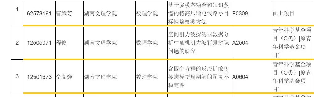 2025年度国家自然科学基金集中接收申报项目评审结果正式公布,我院共获资助3项,包括面上项目1项(曹斌芳教授,基于多模态融合和知识蒸馏的特高压输电线路小目标缺陷检测方法)、青年科学基金项目(C类)2项( 佘高烊博士,含四个方程的反应扩散传染病模型周期解的图灵不稳定性;程俊博士,空间引力波探测器数据分析中随机引力波背景辨识问题的研究),科研工作喜创佳绩!